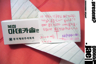 few notes/letters, packs of gum-_-, few pictures and, a madecassol, which is an healing ointment.